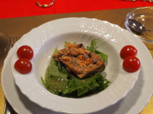 今回のテーマは、「色で楽しむクリスマス♪大根とサーモンのマリネ&カリフラワーのムース&和風ミートローフ」でした。