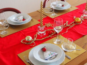クリスマスカラーの赤をメインに、ゴールドをアクセントにした大人のクリスマスを演出してみました。