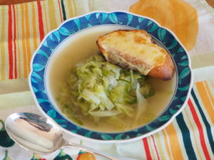 【春キャベツでオニオングラタンスープ】