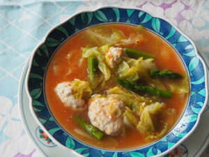 【トマトケチャップで鶏団子スープ】