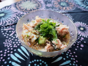 ツナときゅうりと香味野菜がたっぷり入った冷や汁です。