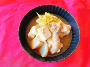 ケーキを焼いている間に、手羽元を出しにしたスープカレー鍋を作ります。